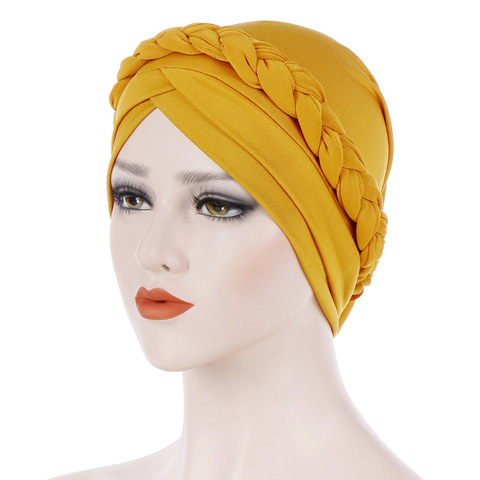 Q514 Musulmano Delle Donne di Stirata Treccia di Cotone Cappello Turbante Sciarpa Cancro Chemio Berretti Berretti Hijab Headwear Avvolgere la Testa di Altri Cappelli